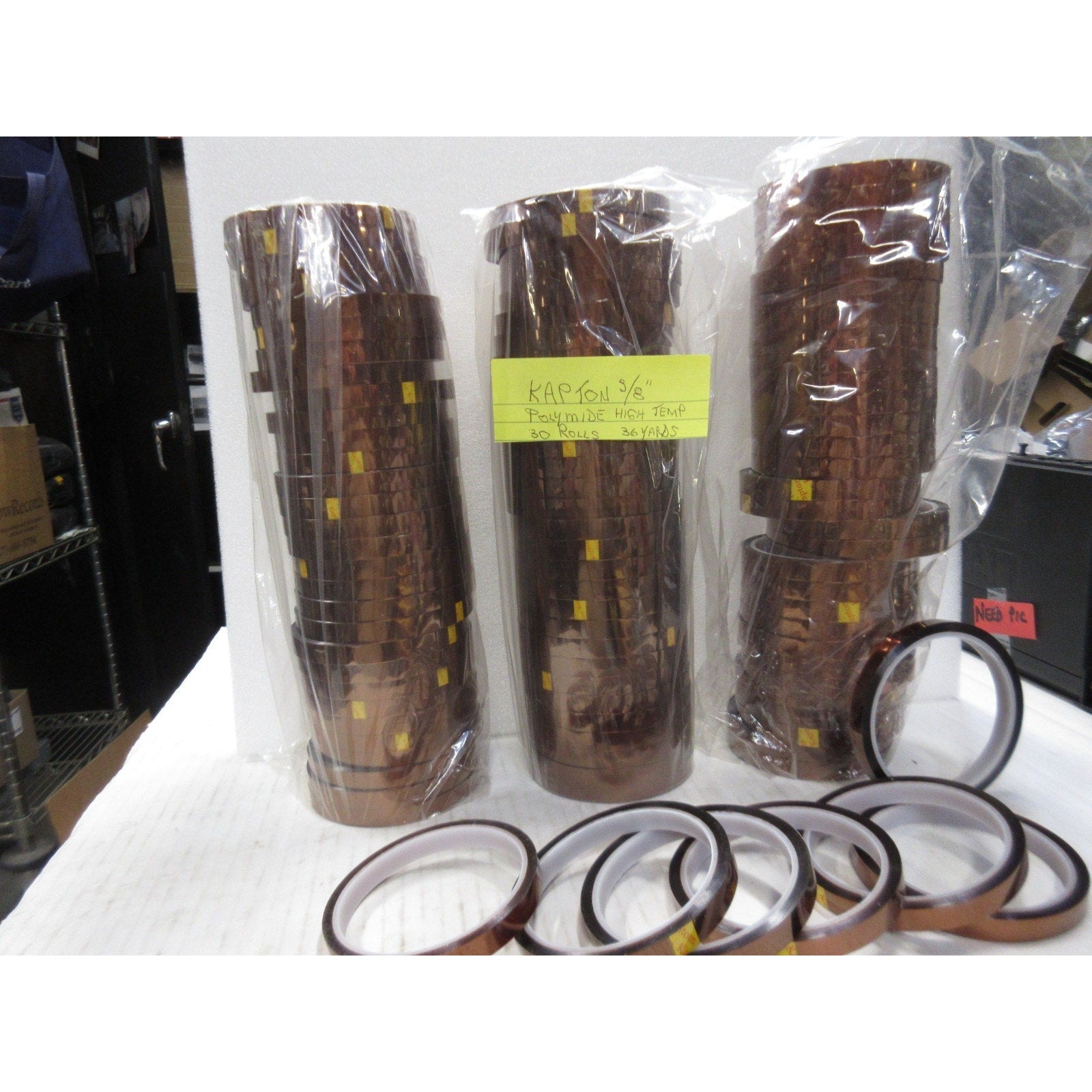 - Kapton 3/8 X 36 YDS Polyimide High Temperature Tape, 1 bag 30 rolls NEW